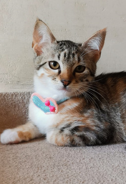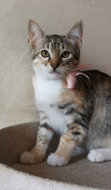 Милая, нежная и спокойная 4 мес малышка Тося ищет семью! Трехцветный полосатый окрас, умные глазки, очаровательные кисточки на ушках и любопытный темный носик – где же вы еще найдете такую красотку! Ласковая кошечка с отличным характером. Не пропустите!