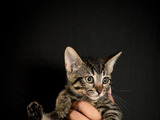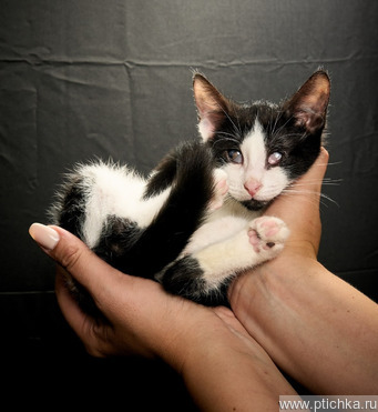 спасен от слепоты, в следствие чего один глазик немного косит, что придает ему еще больше очарования любит играть, лежать в гамачке и обниматься. Очень дружелюбный и ласковый