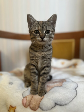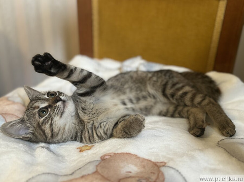 Я совсем крошка - всего килограмм счастья. У меня полосатая шёрстка с рыжим пятнышком на лбу и огромные глаза, которыми я стараюсь понять этот большой мир.