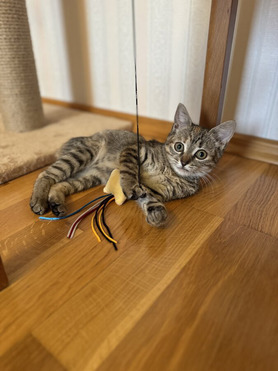 Я любопытная и игривая, но пока немного пугливая - осторожно привыкаю к людям и понемногу строю контакт.