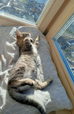 В квартире ведёт себя отлично: аккуратная, уважает интерьер, любит когтеточку и ходит исключительно в лоток. Даже с собакой подружилась! Ей комфортнее, когда в доме есть шерстяной друг — кошка или собака, с кем можно поиграть и поваляться рядом.