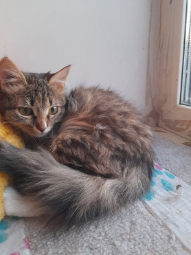 Масяня пока немного робкая, но в её глазах уже живёт доверие к человеку. Она обожает, когда её гладят, с интересом играет с игрушками и мечтает о том дне, когда сможет без страха свернуться клубочком на коленях у своего хозяина. Ей нужно немного времени, чтобы раскрыться, но с вашей любовью и заботой она станет самой преданной и ласковой подругой.