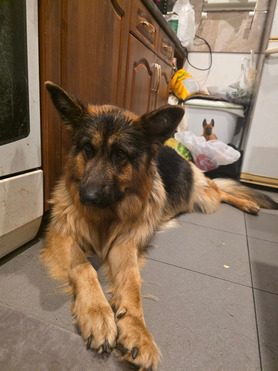 Мать щенков длинношерстная немецкая овчарка. Отец — подлец.