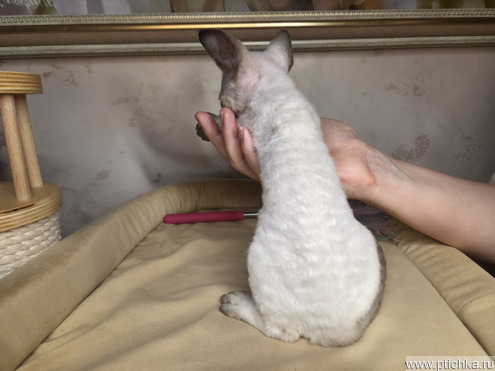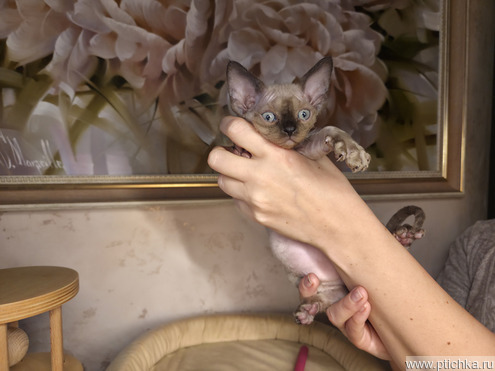 Предлагаются только два самых лучших мальчика, с огромными ушками, кудрявой шубкой, синими с бирюзовым отливом глазками, очень сильными, крепкими лапками и длинным хвостиком. У одного мальчика шубка белоснежная, у другого потемнее. Оба имеют поинтовый окрас.