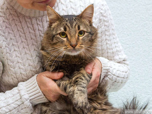 Этот большой пушистый красавец лучше всего чувствует себя на руках у человека.