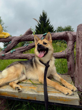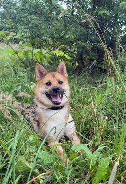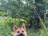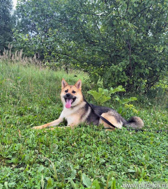 Айна помесь овчарки с акитой. В холке примерно 40 см. Совсем молоденькая, только 1 год.