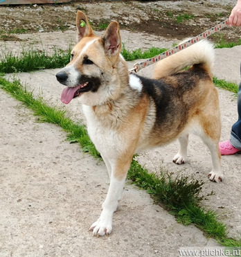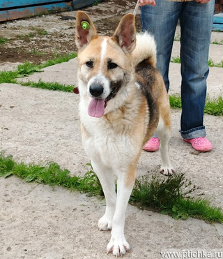 Зирочка хорошо сложена, стройная и подвижная. Имеет интересную трехцветную окраску. В ней есть много от лайки, есть своя "изюминка" - кучерявая шерстка на спинке. Зира метис и поэтому неповторима.