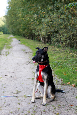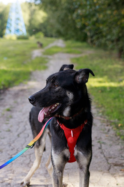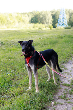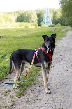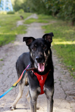 Парню чуть больше 1 года. Он попал в приют крохотным щенком в картонной коробке и вырос в красивого статного мальчишку. Больше расти точно не будет, если только окрепнет и возмужает. Сейчас весит примерно 20 кг.