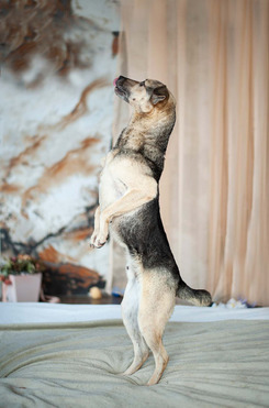 Гектор очень ласковый, добрый, очень тактильный. Любит деток.
