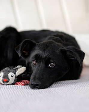Молли — нежная, скромная девочка с коротким смешным хвостиком, который мило виляет от счастья, когда она видит людей.