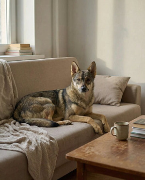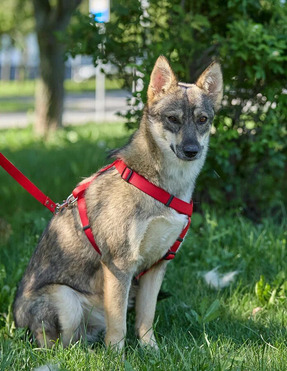 Дома Леди ведет себя спокойно, терпит всё, что положено квартирной жизни. На прогулках она пример для других: уверенно идёт на поводке, дружелюбна с собаками, к кошкам относится спокойно. Активная, игривая, но без истерик в ней есть баланс: жизнь с ней комфортна, безопасна и радостна.