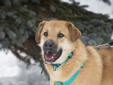 Скорее всего метис крупной породы, высота в холке 60 см, вес 25-27 кг.