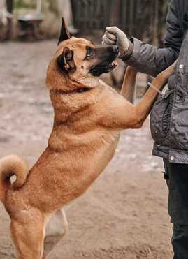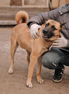 Плюша — молодая, красивая и умная собака 4 лет. Привита, стерилизована, вес около 30 кг, полностью готова к переезду.