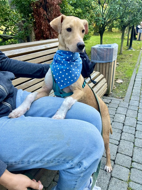 Вилли — это солнечный парень,его история началась с пляжа в Абхазии: он был одиноким и травмированным, но прошёл лечение и реабилитацию. Сейчас он здоров и ждёт своих новых хозяев на передержке.