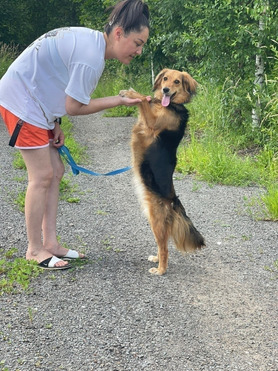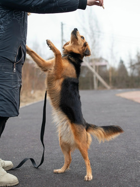 Любит побегать и поиграть с небольшими собаками, больших-опасается.