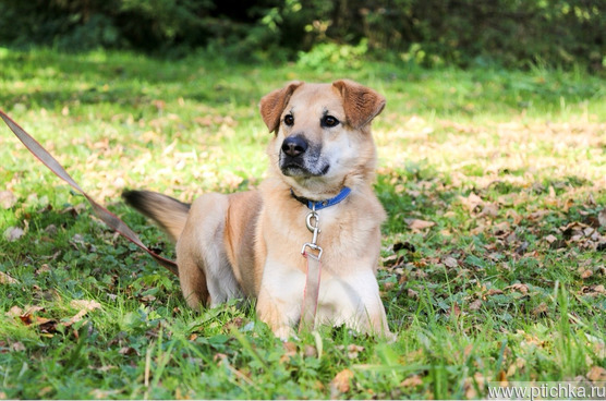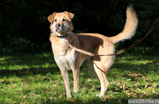 Скорее всего метис крупной породы, высота в холке 60 см, вес 25-27 кг.
