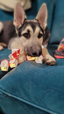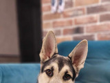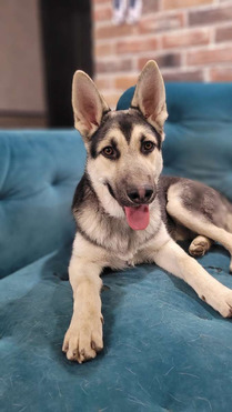 Мухтар очень веселый, активный парень. В меру балованный, как все дети. Он любознательный, рад учиться всему новому. Мухтарище умный и внимательный, любит заниматься. Слышит человека, знает простые команды. Ходит на поводке.