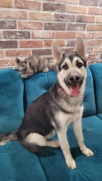 Очень дружелюбен ко всем собакам и кошкам. Так же к детям и людям.