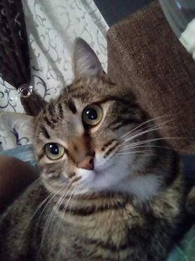 Кузьму я нашла котенком, когда шла из офиса домой, он очень жалобно плакал, был очень худой. принесла домой. Кузя очень игривый. По утрам будит, кусая за пятки. так он дает понять что его нужно покормить.