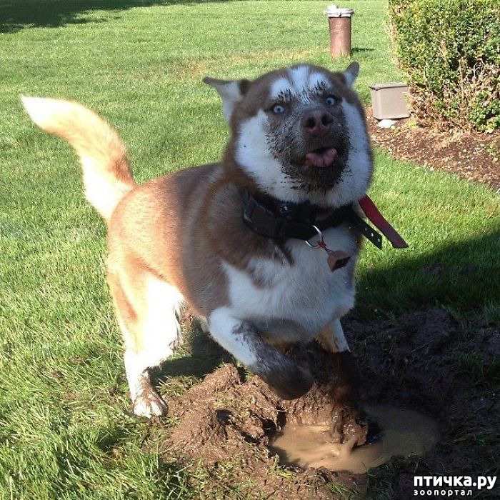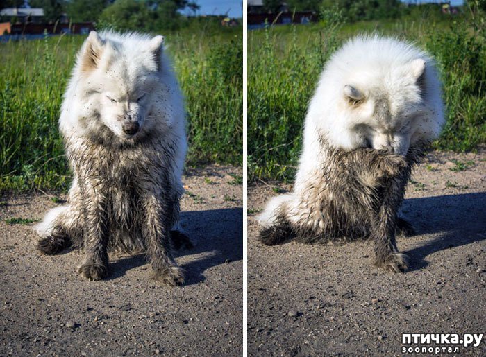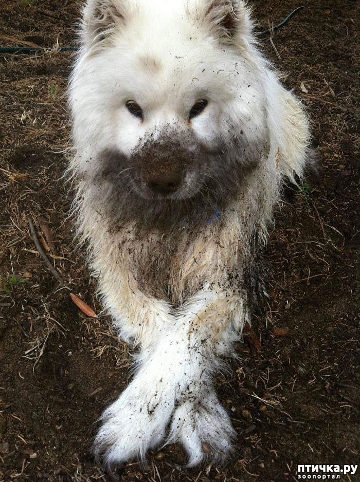 19. Просто белая хаски в черной луже