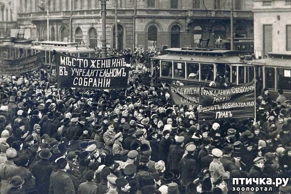 В 1917 году женщины России вышли на улицы в последнее воскресенье февраля с лозунгами «Хлеба и мира». Через 4 дня император Николай II отрекся от престола, временное правительство гарантировало женщинам избирательное право. Этот исторический день выпал на 23 февраля по юлианскому календарю, который в то время использовался в России, и на 8 марта по григорианскому календарю.