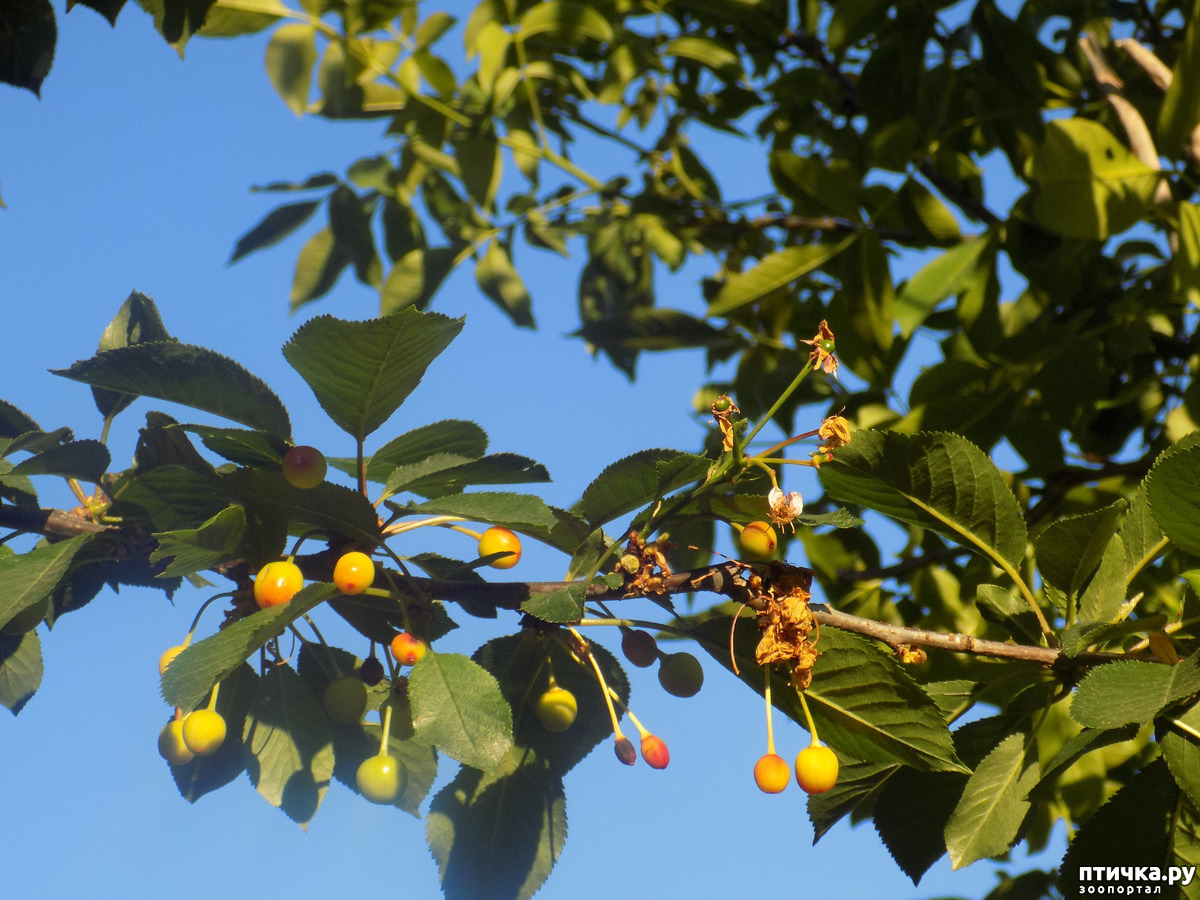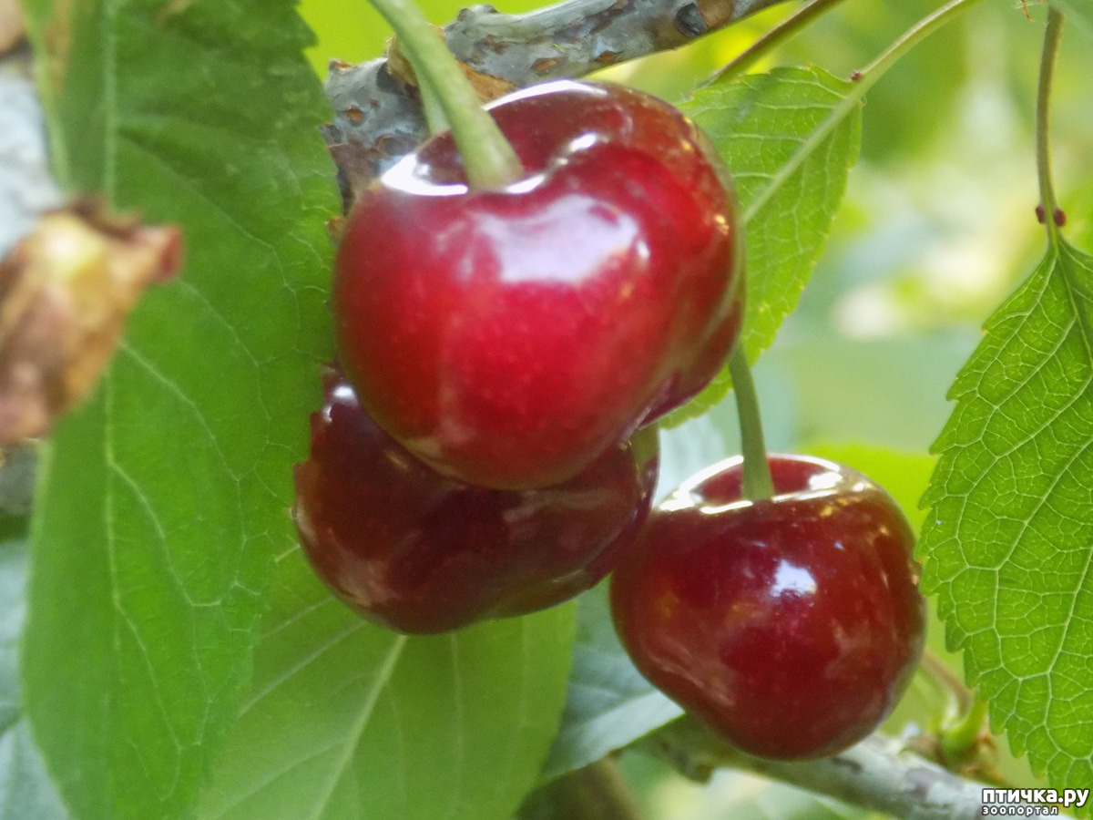 А, вот, черешня уже поспевает. Мало, очень мало ягоды, но кое-что есть.