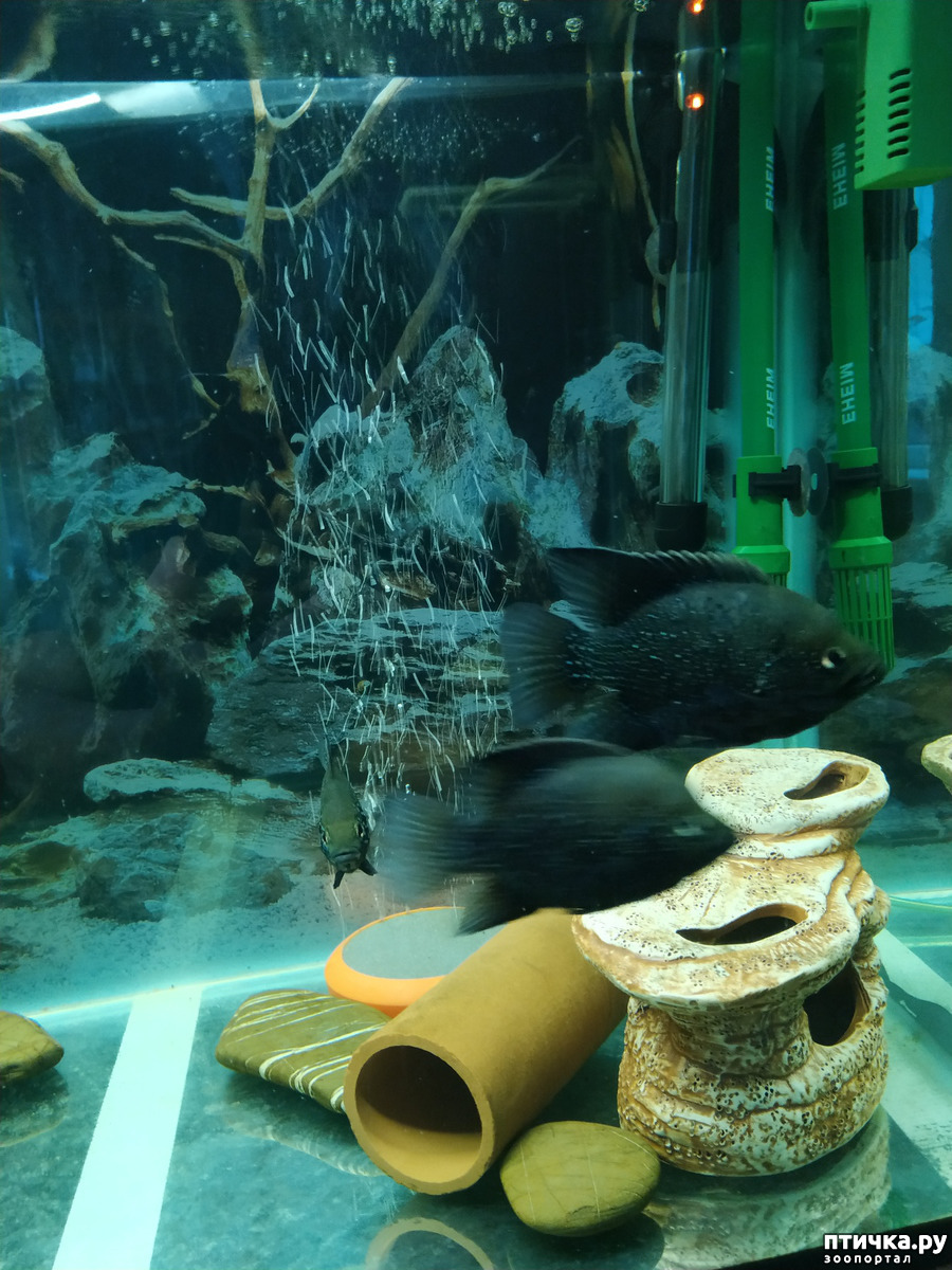 На третий день после публикации об'явления, приехали и забрали двух самок для создания своей семьи тиляпий. Отлегло! Остался один самец-изгой, которого, за неимением вариантов, рискнул посадить обратно к сладкой парочке. Молниеносно он был унижен и оскорблен. Спрятавшись в пещеру, постоянно уворачиваясь от клюющих его монстров, принимал свою уготованную судьбу. Практически никто не притрагивался к еде, кроме изгоя, которого я пытался, хоть как-то покормить.