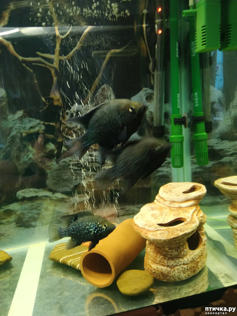 И вот настал момент! Раб пещеры, доведённый до отчаяния, взбунтовался!!! Выплыл, перестал бояться и убегать. На все поклёвки реагировал стойко, нордически. Итог: все плавают вместе стайкой. У меня нет слов! Я впервые это вижу у подобных цихлид!