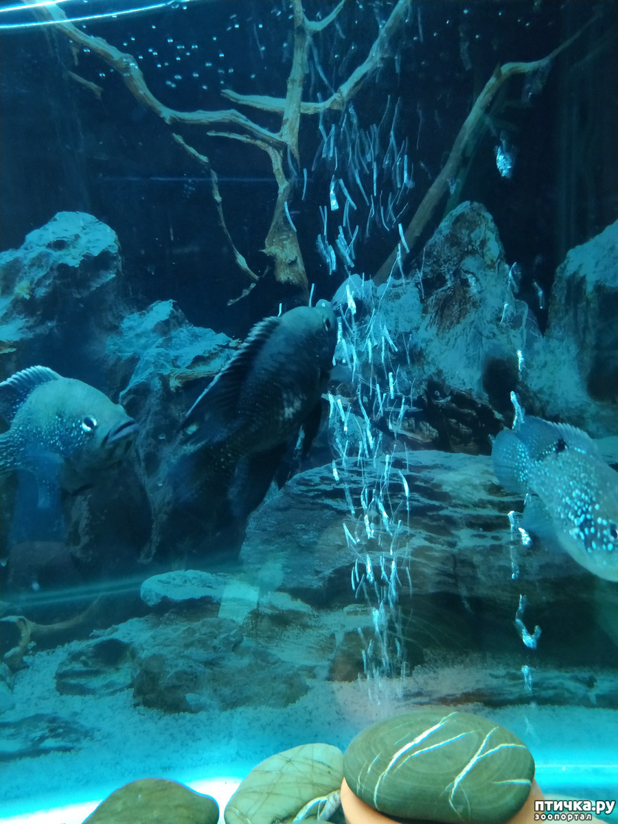 Вчера вечером для меня было непонятно, почему едят двое. Сегодня насторожило, пока всё-таки не выплыл самец, слегка ощипаный и уже побеждённый. И что вы думайте? Это был тот самец-гегемон, который до последнего времени никому не давал даже свободно плавать!
