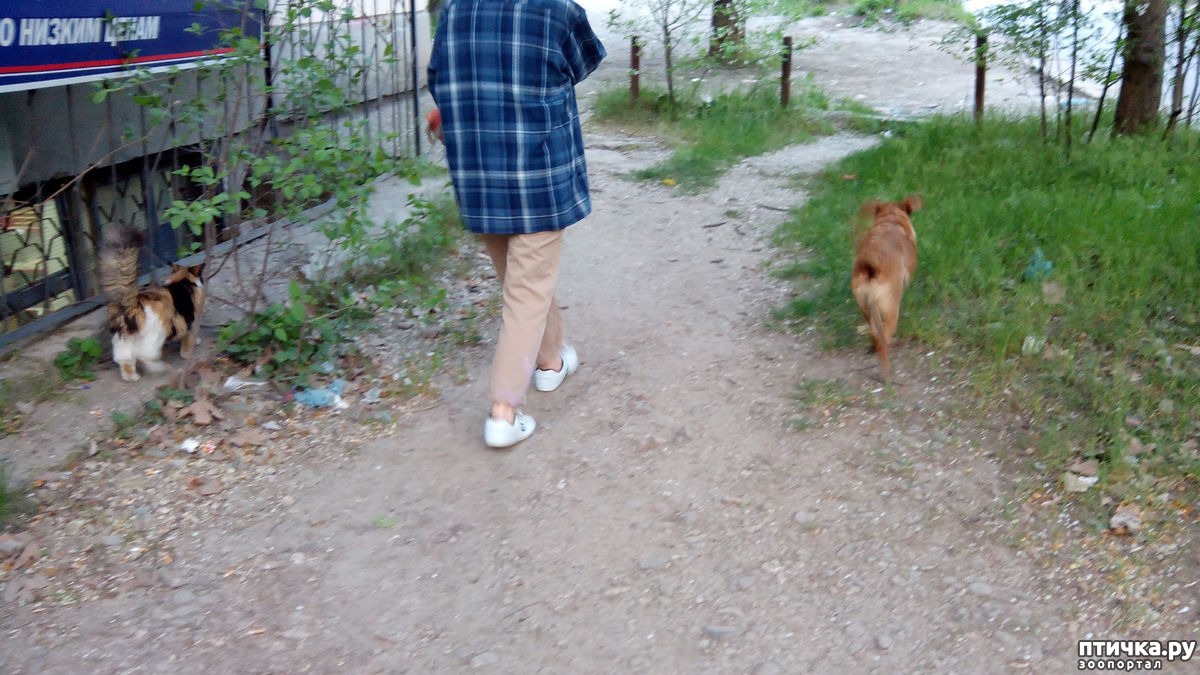 Анфиса обычно крутится возле подъезда Л. П. и караулит ее, а потом бежит следом.