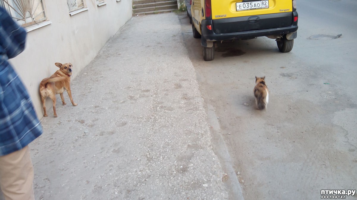 Собачка кошек любит и ее не обижает, следит, идет Анфиса или отстала.