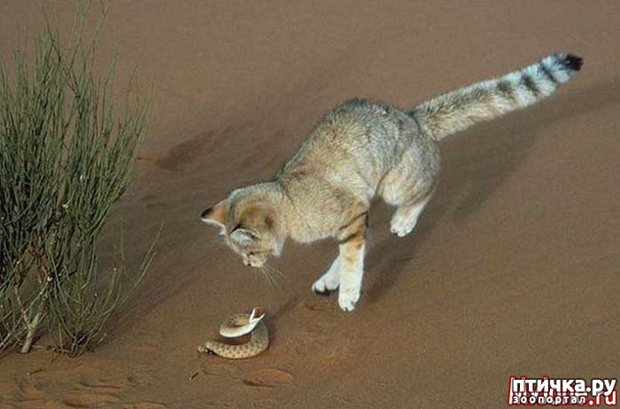 Для разнообразия меню, хищники охотятся на рогатую гадюку, которая является весьма ядовитым представителем местной фауны.