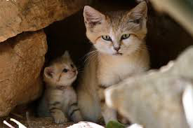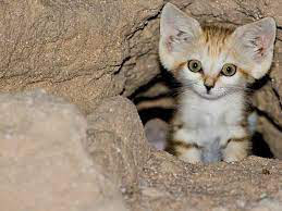 В пустынных и засушливых местах Северной Африки и Центральной Азии обитает песчаный кот, который также известен как барханнаякошка. Их можно встретить в Сахаре, на Аравийском полуострове, в районе Каспийского моря, в Пакистане и др.