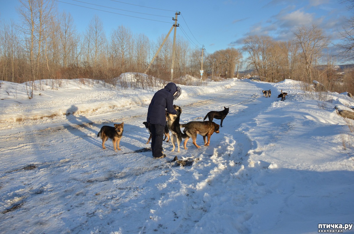 Есть у нас" подшефный батальон" как мы его зовем. Когда Вайс был жив, мы часто ездили с ним на машине подальше из города. Там он бегал свободно, нам спокойно было. Однажды Вайс нашел свору худющих, грязных, несчастных собак-2кобелька, 2 девчонки, молодые, бегали на речку пить. У нас корм оставался, как они набросились, все крошечки подобрали! Ноябрь уже был, они вырыли лежанки себе у заброшенных дач, а когда пришли сильные морозы, мы стали приезжать через день, кормить их. Договорились с продавцами мяса, они нам отходы по бросовой цене отдавали. Наша команда зашерстилась, зиму пережила, к нам еще люди присоеденились. Узнав про" выездную столовую", другие собаки подтянулись, их в дачном массиве много оставалось-брошенок. Летом им было полегче-народу много на дачах, а зимой-никого.