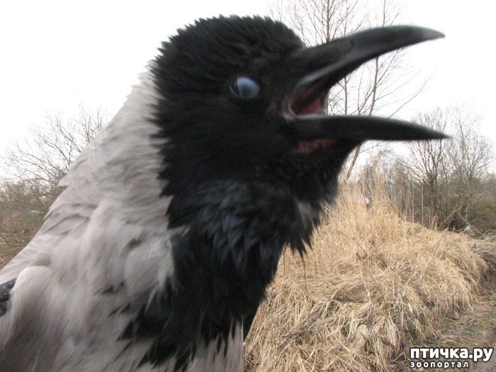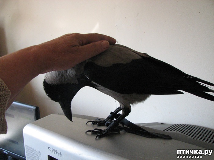 Но я собираюсь рассказать удивительную историю поздней любви. Точнее, я просто скопировала растянутые по времени записипользователя форума mybirds.ru с ником Zosya и немного отредактировала. Итак, дано: серая ворона, самец Гурам, почти 15 лет, спасен, докормлен и адаптирован к вольной жизни 14,5 лет назад. Процесс адаптации был очень сложным. Походы на помойки, поиски дохлых голубей и крыс, "знакомства" с местными воронами. Сейчас это было бы почти невозможно- в Москве, по крайней мере в центре, почти все помойки крытые, и пришлось бы обучать еще и нахождению способов проникнуть туда. А в 1999 году весной (когда Гурама адаптировали) помоек было много, все открытые, ларьки с курами-гриль и шаурмой, и кроукиллеров тогда практически не наблюдалось (спустя года 4 активизировались). Учили опасаться собак и людей любых (очень трудно давалось, и неприятно для нас, приличных людей). Начиналось с того, что брали его миску "для вкусностей" и ставили у помойки. Он гулял по бакам, спускался потом к миске и ел, там же его и брали. Потом шли домой, разными путями. Он ведь спокойно на руке сидел... мог слететь вперед на несколько метров, потом ждал когда подойдем, опять ехал на руке, опять слетал. Всегда выходили голодными, с мешком вкусностей (для подманивания). Потом еду уже на землю выкладывали (фу, гадость). Отходили от него. Вороны же любопытные- он с интересом там лазал. Мы брали тряпочки, рулончики от туалетной бумаги, стаканчики, пакеты ипрятали туда лакомство (сначала он это дома просек), ставили такой стаканчик в бак. Гурам уже оттуда вытаскивал... потом мыши пошли кормовые, потом крысы. кусочки перепелов, уже потом -голуби... вот это была жесть. Хорошо что была весна, светало уже рано, и наши походы на помойку "белое население" не видело, а собачники не особо на нас смотрели. Он не понимал угрозы от людей, когда на него замахивались, как ни оденься, по голосу узнавал. Пришлось просить знакомых собачников в него бросать мелкие предметы... а потом и крупные. Естественно не сильно... Резиновых перчаток у нас тогда с мамой ушло немеряно, и две куртки пришлось выбросить (специально были отобраны из старых- для помойных походов). Пить из луж не желал. Стали ходить на Чистопрудный бульвар, бросали в воду у берега кусочки вкусного, он за ними охотился. Ну и был момент, когда давали живой корм- чтоб он не боялся движений еды. Это мама делала... начинали в доме, в ванне, продолжали на улице. Два месяца заняла реабилитация его. Но у нас в центре что хорошо- дома все разные, крыши разные, масса ориентиров на местности (т. е. не спутаешь одно строение с другим), все строения не выше 6 этажей, помоек полно, укромных мест много -слуховые окна чердаков, и сами чердаки- огромные, теплые, сухие. Воды- целый Чистый пруд. Детей мало, крупных собак тоже немного, бродячих была одна семья только. Что еще помню... когда выносили его гулять- "местные" вороны слетали вниз и одна -две начинали над нами грозно ветки долбать. Ему это было ужасно интересно, а мы боялись сначала. Но все-таки он был еще птенец, и взрослые просто грозили (может инам, а не ему).. В начале самом было сложно- чтобы он понял. что человек сидевший рядом с ним на кухне - тот же самый, что появляется внизу. Чтобы сделать связку 6-й этаж - уровень асфальта, моя мама надевала спасжилет, показывалась ему на кухне, прятала за кромку жилета игрушки при нем, потом ух