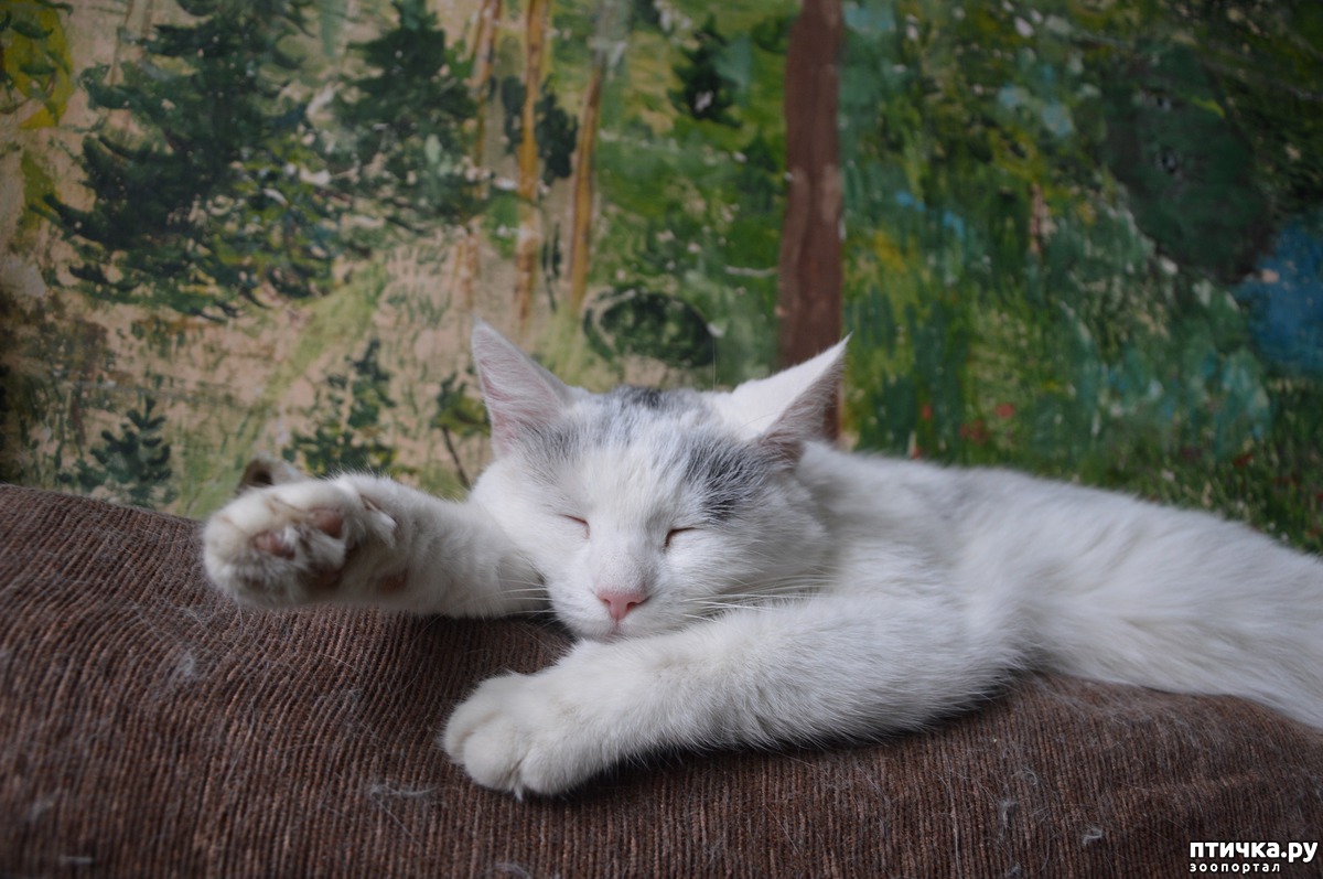 День теперь у Грэмс проходит так. Утром она спит с моей младшей дочерью. Грэмс считается Наташиной кошкой. Грэмс встаёт поздно, когдавсе коты и люди уже позавтракали, люди убежали на работу, а коты начинают думать об обеде. Просыпается Грэмс и «Миу, миу, миу». Завтракает, иногда засыпает снова, но чаще перебирается на шкаф в другую комнату и снова: «Миу, миу!!!» Только громче, дольше и настойчивее. Это значит: «Несите траву». Бегу во двор, приношу пырей. Она очень радуется: «Миу, миу!!!», крутится, бегает по шкафу. Сейчас она почти не ест траву, топчется по ней, трётся минут пять, иногда жуёт и только пырей! День проводит на шкафу, иногда на окнах. Почти не ест, разве что-то особенно вкусное, например, паштета десять грамм. А часто просто ничего. Иногда вдруг соскакивает со шкафа и несётся по комнатам, задрав свой хвост. Делает пару кругов. Может ещё чем-то заняться. Вот пару месяцев назад она начала ремонт, который я планировала на весну.
