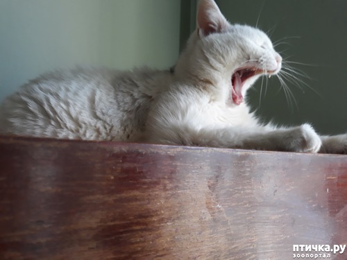 Вечером я обычно работаю за компьютером, она перебираетсяпоближе, на сервант. Ждёт меня. Сначала молчит, может даже подремать. А потом громкое, призывное: «Миу!!! Миу!!!». Значит 9 часов вечера, пора спать. Я договариваюсь с ней, что спать пойдём в десять, надо же заработать на «ройял конин». Если будем жить на одну пенсию, то придётся переехать на «вискас».