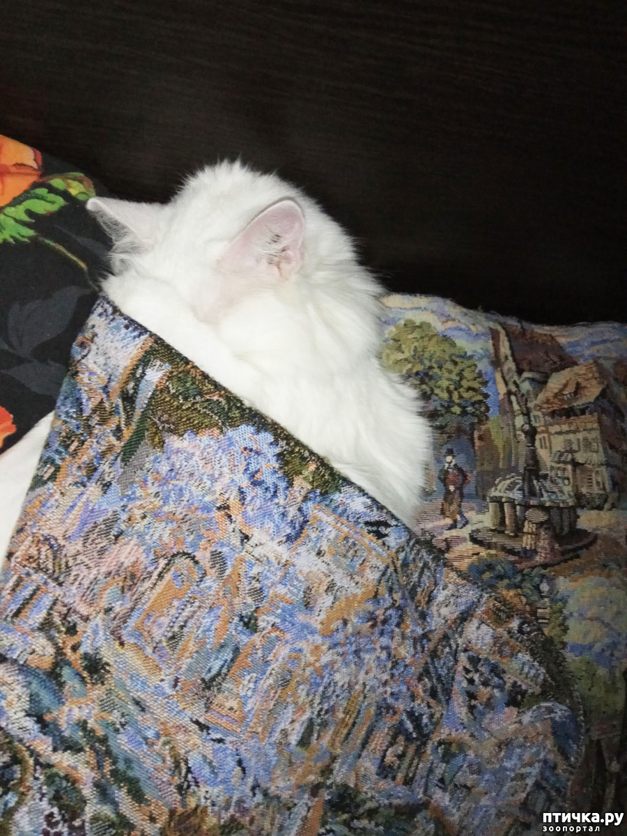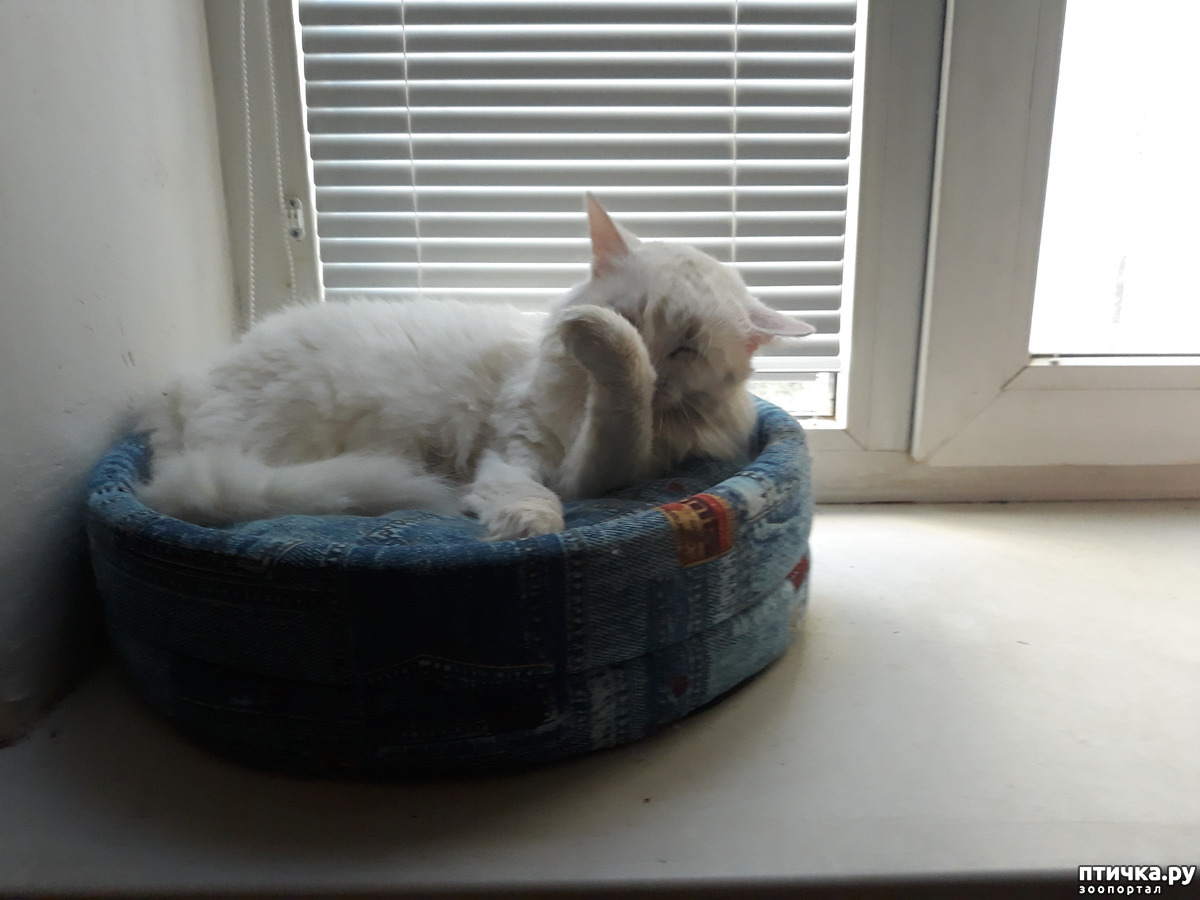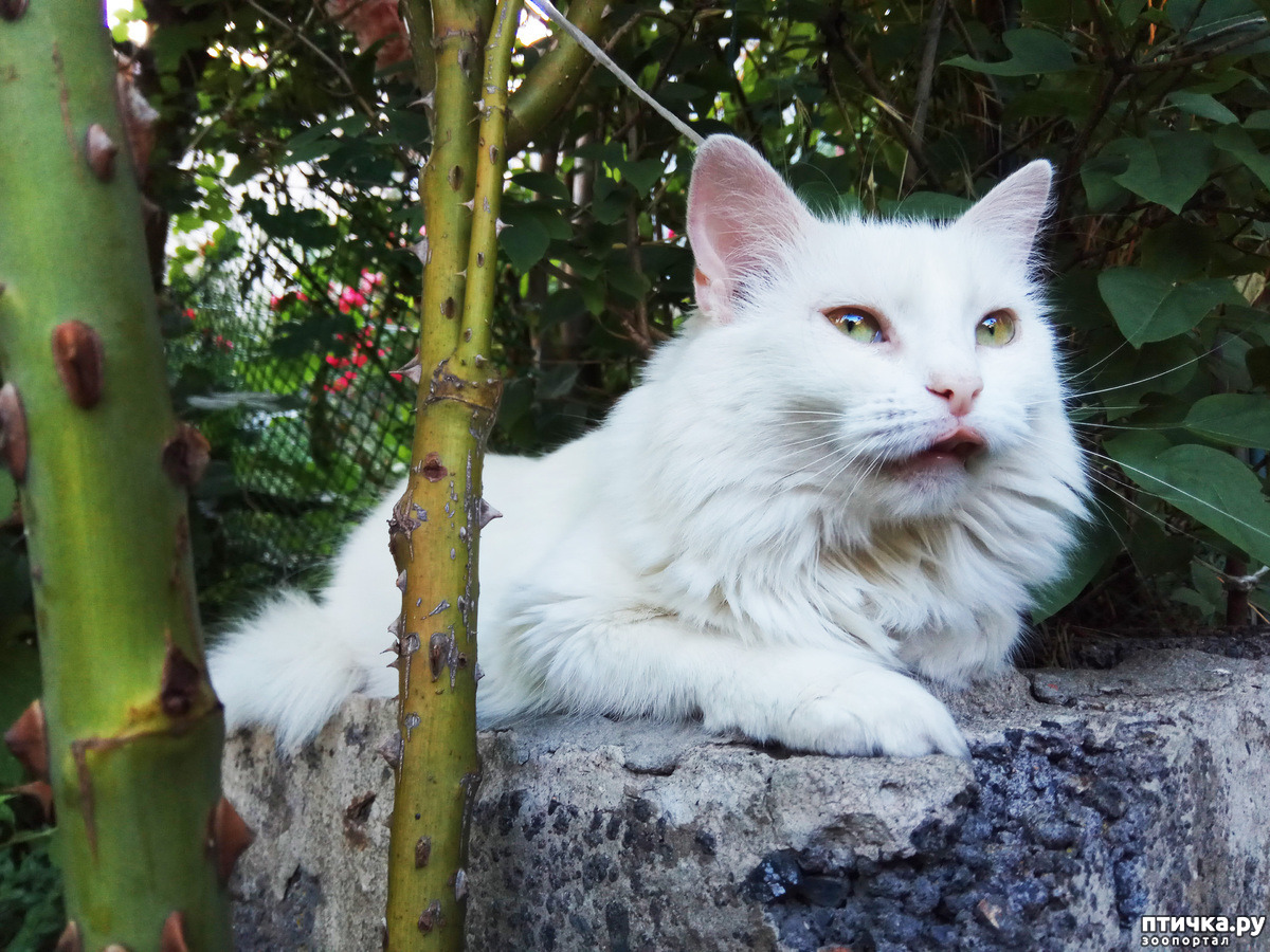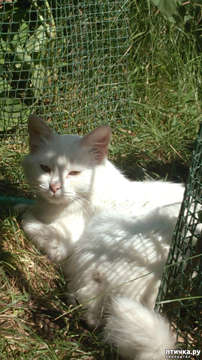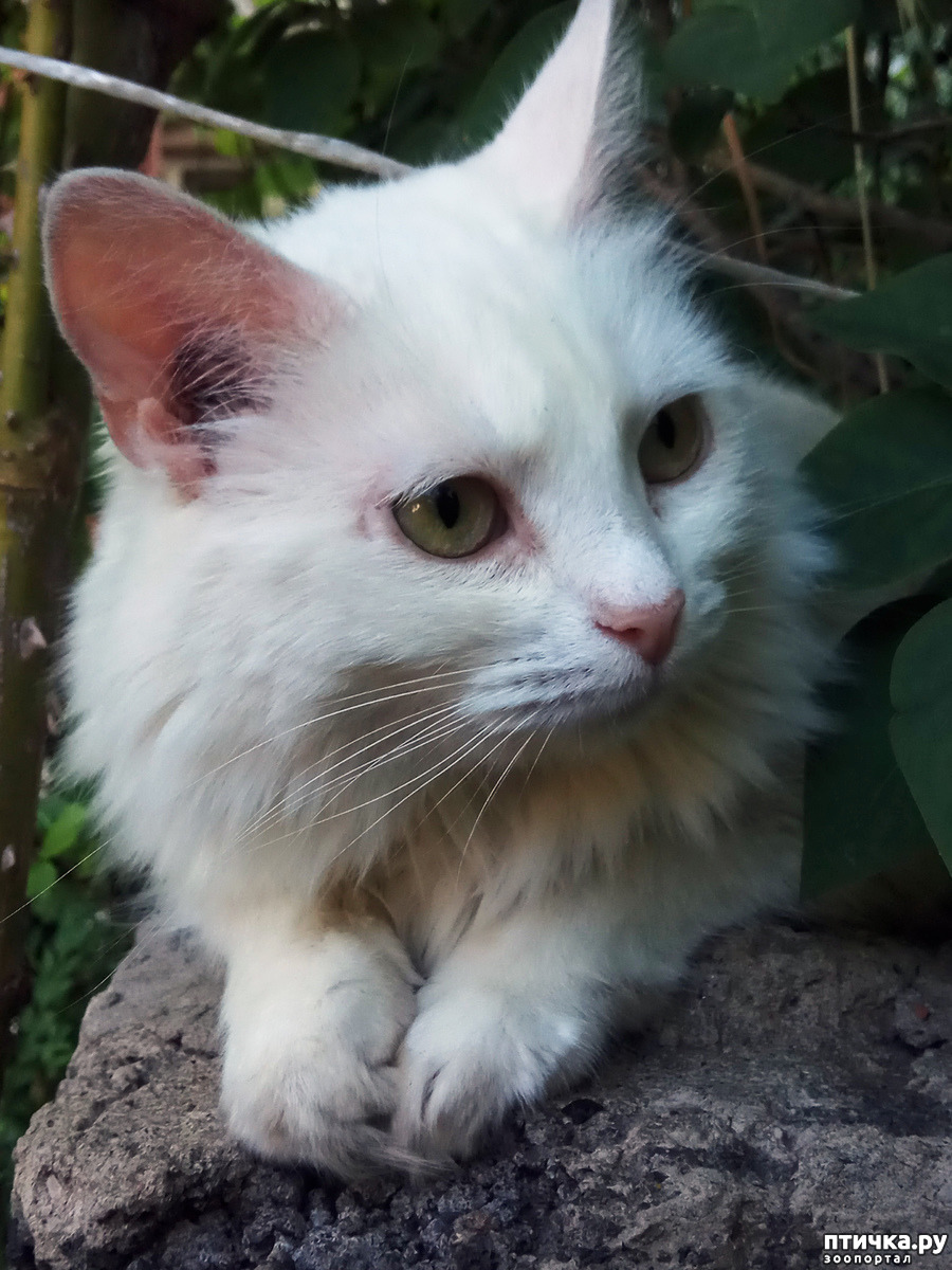 Но …В мае позапрошлого года моя младшая дочь гуляла с друзьями по набережной и увидела белую кошку, которая неподвижно сидела около клумбы. Через пару дней она снова шла по набережной, и та же кошка сидела в той же позе. Дочь сказала мне, что кошка не выходит у неё из головы. Начал моросить дождь, и…. я сбегала за кошкой. Она была в крайне тяжёлом состоянии. Лечили в двух ветклиниках, кошка начала есть, но далее всё безрезультатно: онкология. Прожила она у нас месяц. Когда её не стало, то мы очень переживали, но что сделаешь...