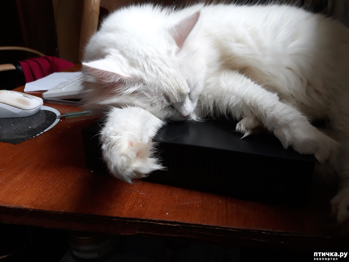 Первый год «тише воды, ниже травы». Отъедалась, отсыпалась, обучалась правилам поведения в доме. Утром просыпаюсь, а на обеденном столе Белая, свернулась клубочком и спит. Я ей очень вежливо объяснила, что столы не для котов. Вроде бы поняла. А вот компьютерный стол – не препятствие. Ибо тут стоит ресивер. Он тёплый и все кошки обожают на нём спать. К ресиверу подключены камеры наружного наблюдения. Систему наружного наблюдения подарил и установил мне брат. Около десяти лет назад у нас началась серия мелких краж: