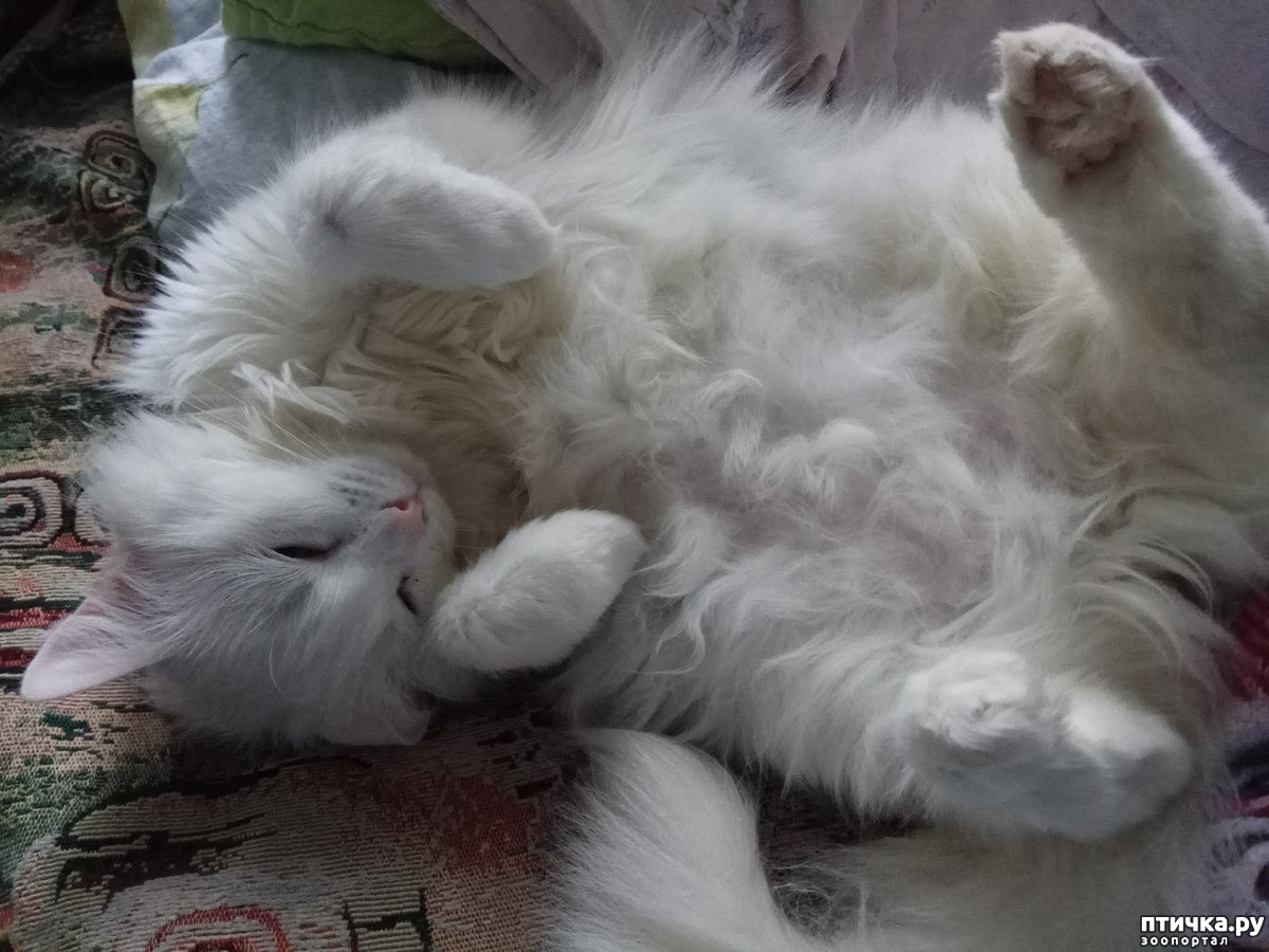 А Белка - милая, ласковая, нежная кошка. Поведение безукоризненное, вот только шерсти у неё и от неё много и очень любит ресивер и принтер. Обожает лежать на одном из них и помахивать своим белоснежным хвостом.