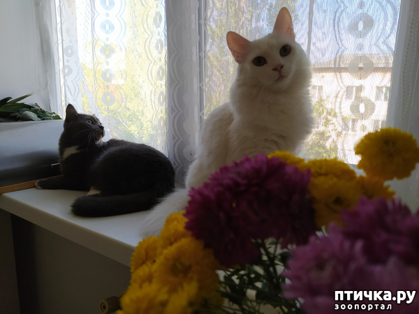 Я тут вам уже жаловалась, что Мурчик периодически запрыгивает на Беляша, как на кошку.