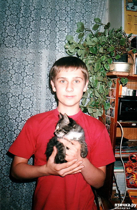 Это чудо в один очень дождливый день нам в офис подбросили в возрасте примерно месячном. Поскольку у меня незадолго до этого погиб кот, решила взять мелкого, похожего тогда на мокрую лохматую гусеницу. Сын был рад.