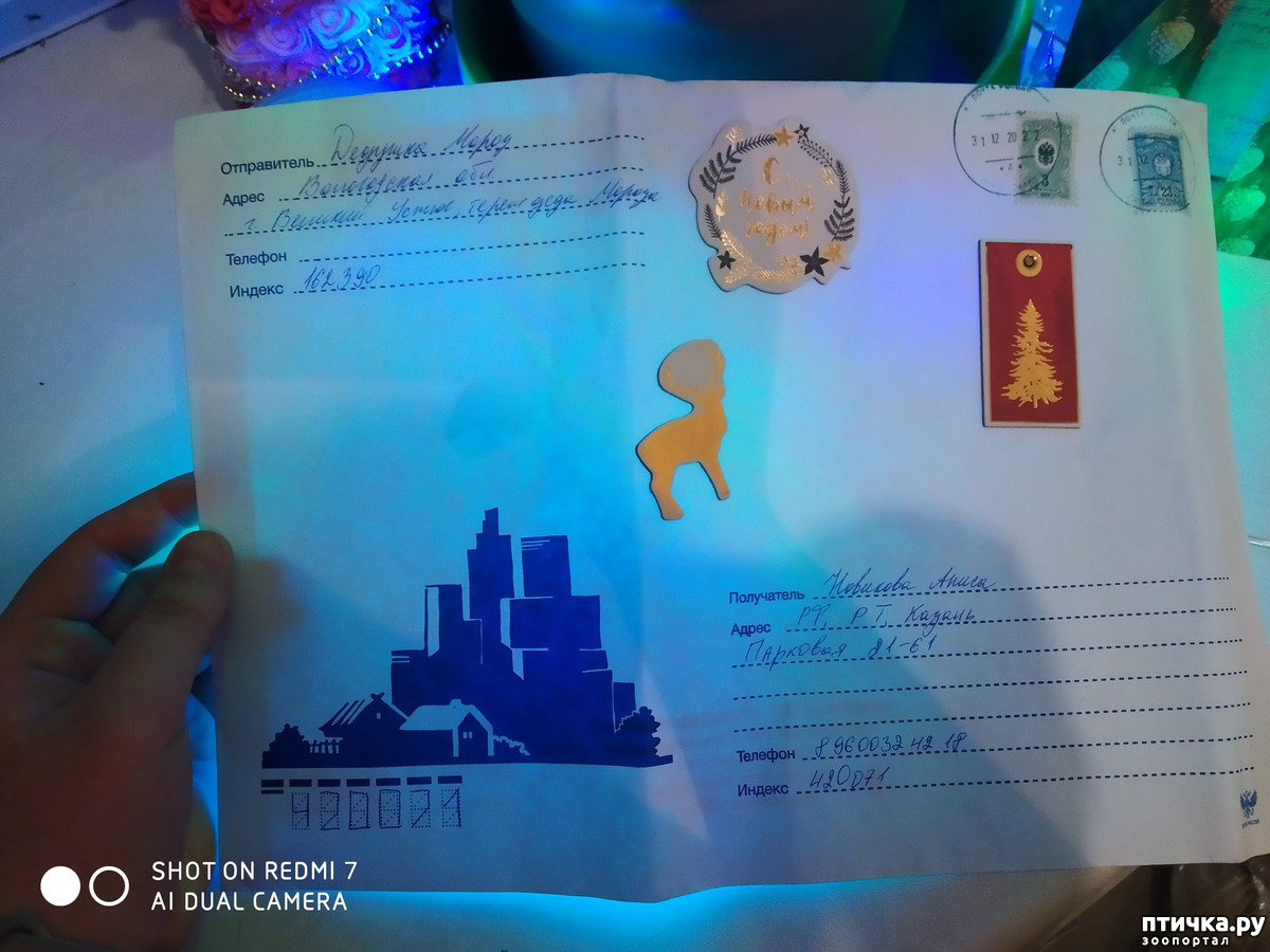 А мне пришло новое письмо от деда Мороза! Вечером (ночью) мама после прогулки с собаками пошла проверять почтовый ящик, а там... Лежало мне конверт с письмом от деда Мороза!