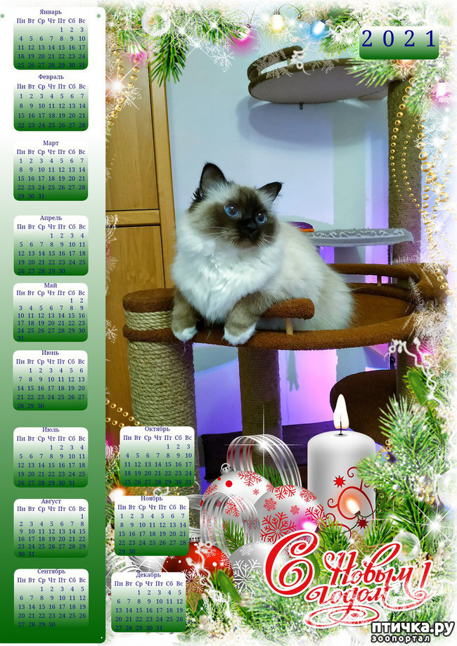 Дорогие "птичники", поздравляю всех с новогодними праздниками, крепкого здоровья, благополучия вам, вашим родным, вашим любимкам-питомцам. А поскольку я, всем сердцем любящий "птичку", все же не такой активный птичник (в основном я читатель, а не писатель), то как-то и подарков новогодних не предвиделось. Но! Новогоднее чудо у меня на стене рабочего кабинета! Календарь на 2021 год с Миллочкой! Коллеги заходят и засматриваются на кошаню, нереальная красавица! Ну заходил Дед Мороз, занес подарок! (Спасибо Игорю за пост с календарями!) Всех благ вам, долгие лета "птичке. ру!