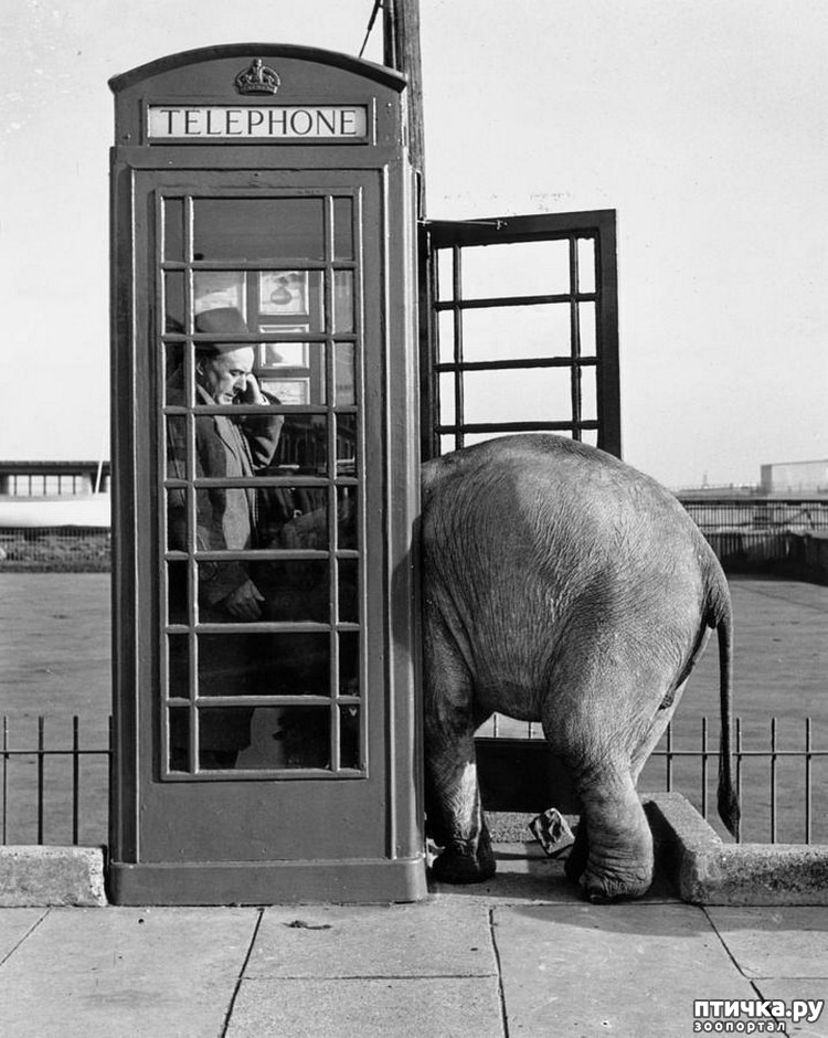 Слонёнок Ева пытается протиснуться в телефонную будку