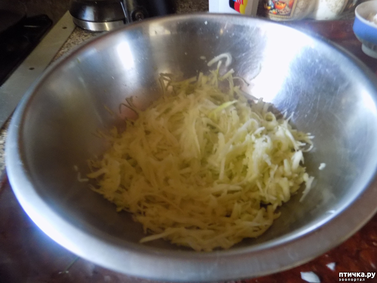 Кабачок натираем на крупной тёрке, присаливаем и даём постоять для выделения сока.