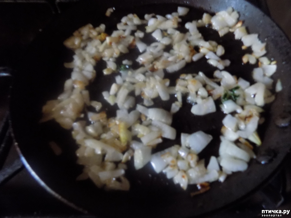 Тем временем, нашинкуем репчатый лук и припустим его на сковороде с минимальным к-вом масла.