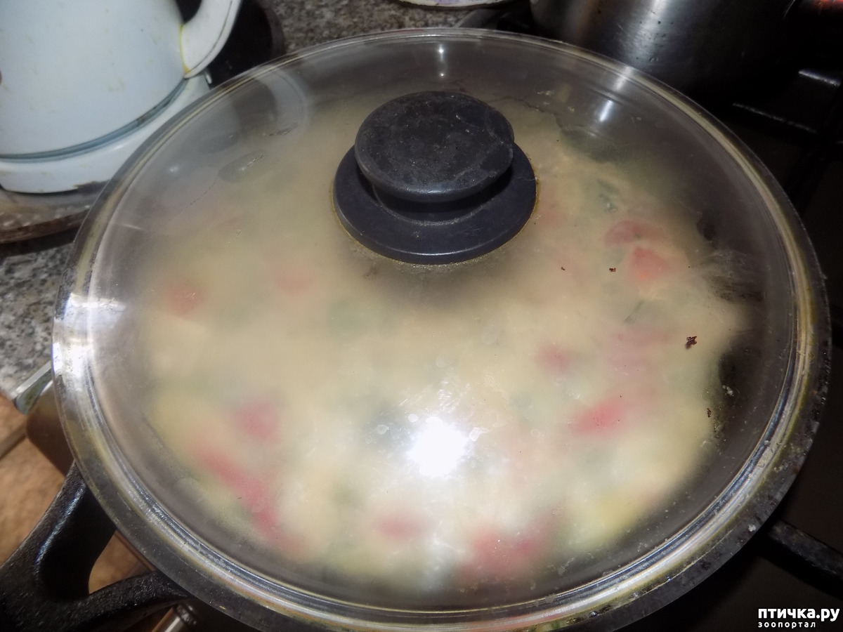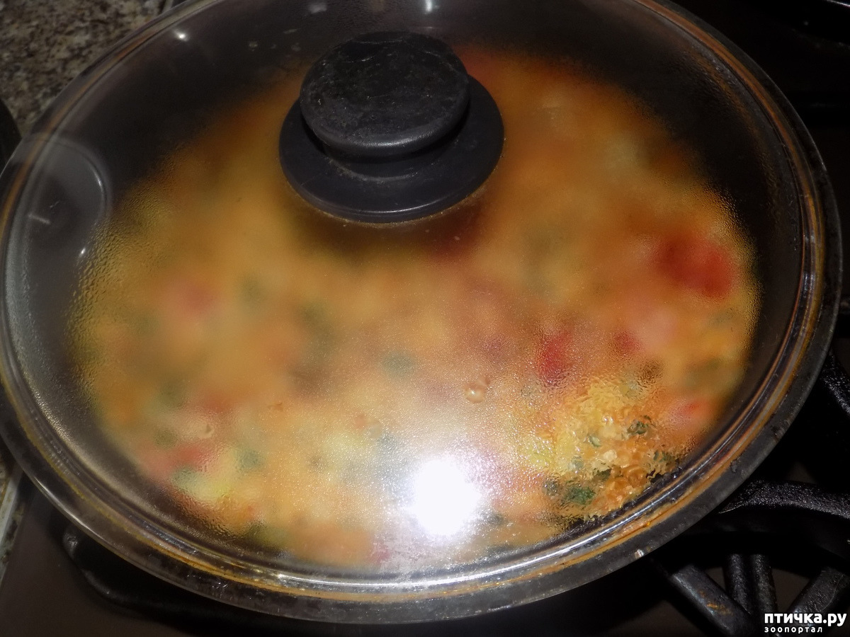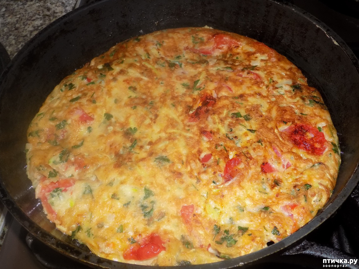 Но мы снова упрячем эту красоту под крышку, чтобы дать возможность нашему омлету хорошенечко пропечься и подрумяниться.