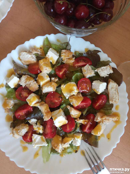 А мы вчера делали салат, я купила заправку - случайно наткнулась - манговая заправка. Стало интересно, вот результат