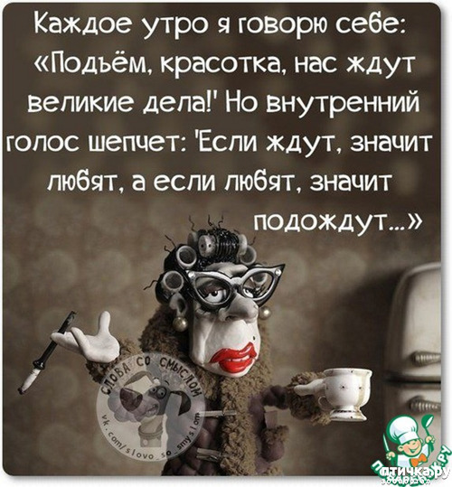 Написать комментарийЯ такая по утрам только минут 10-15, до первого глотка кофе.